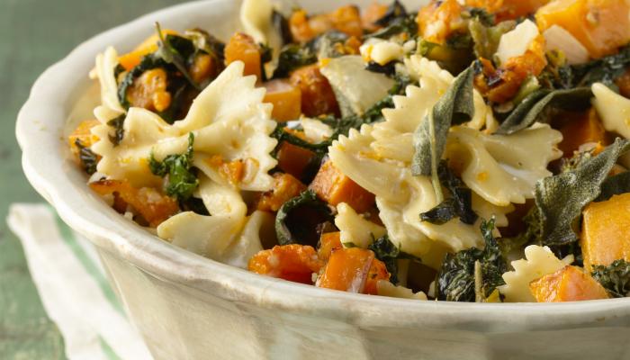 4. As the squash becomes tender, drop the pasta into the boiling water and cook it until tender, but with some firmness to the bite. Drain in a colander.