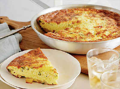 Pour the egg mixture over the potatoes and place the pan in the center of the oven. Bake the frittata until it is browned and puffed, 50 minutes to 1 hour. It will be rounded and firm in the middle and a knife inserted in the frittata should come out clean. Serve hot.