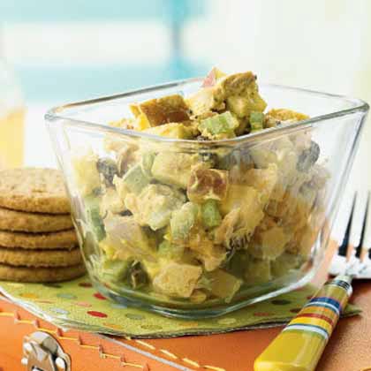 Combine mayonnaise, curry powder, and water in a medium bowl, stirring with a whisk until well blended. Add the turkey, chopped apple, celery, raisins, and salt; stir mixture well to combine. Cover and chill.